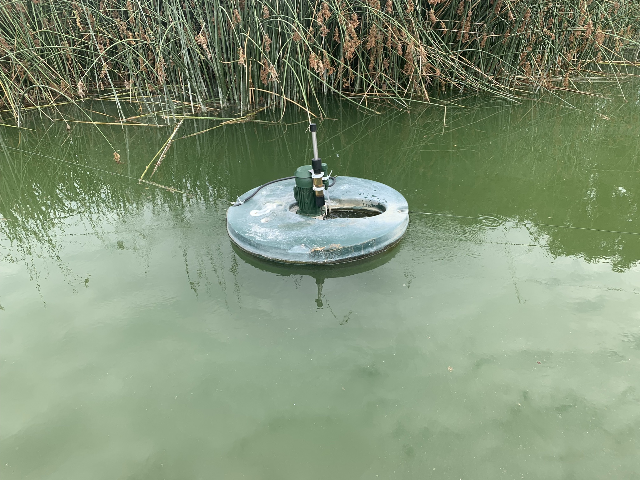 Our unit floats at the site; others pump water in and out of a land-based treatment facility. The MK1 processes 50 gallons/minute or about 50,000 gallons/day. The MK1 achieves a 95% oxygenation rate and 4.5 gallons of oxygenated nanobubbles enter the water every hour.